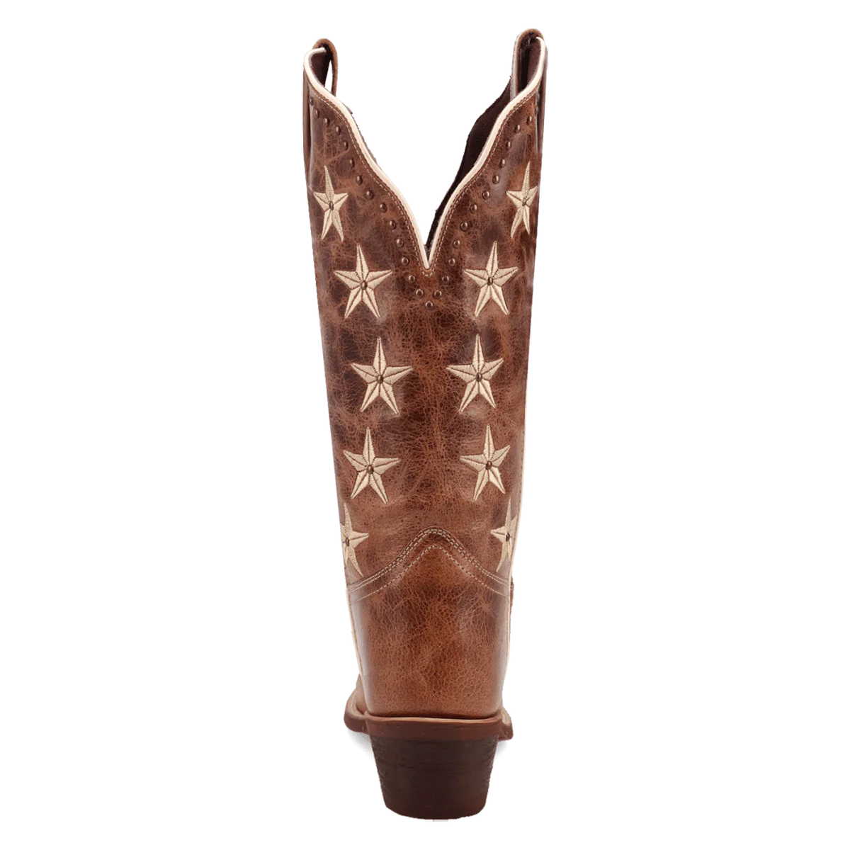 The Laredo Women's Serenade Western Boot offers comfort and style with a 12-inch shaft, cushion comfort insole, and snip toe. Featuring Laredo Flex rubber outsole and medium cowboy heel, this classic brown boot is accented with star stitching on the shaft and bold embellished studs for a striking finish.